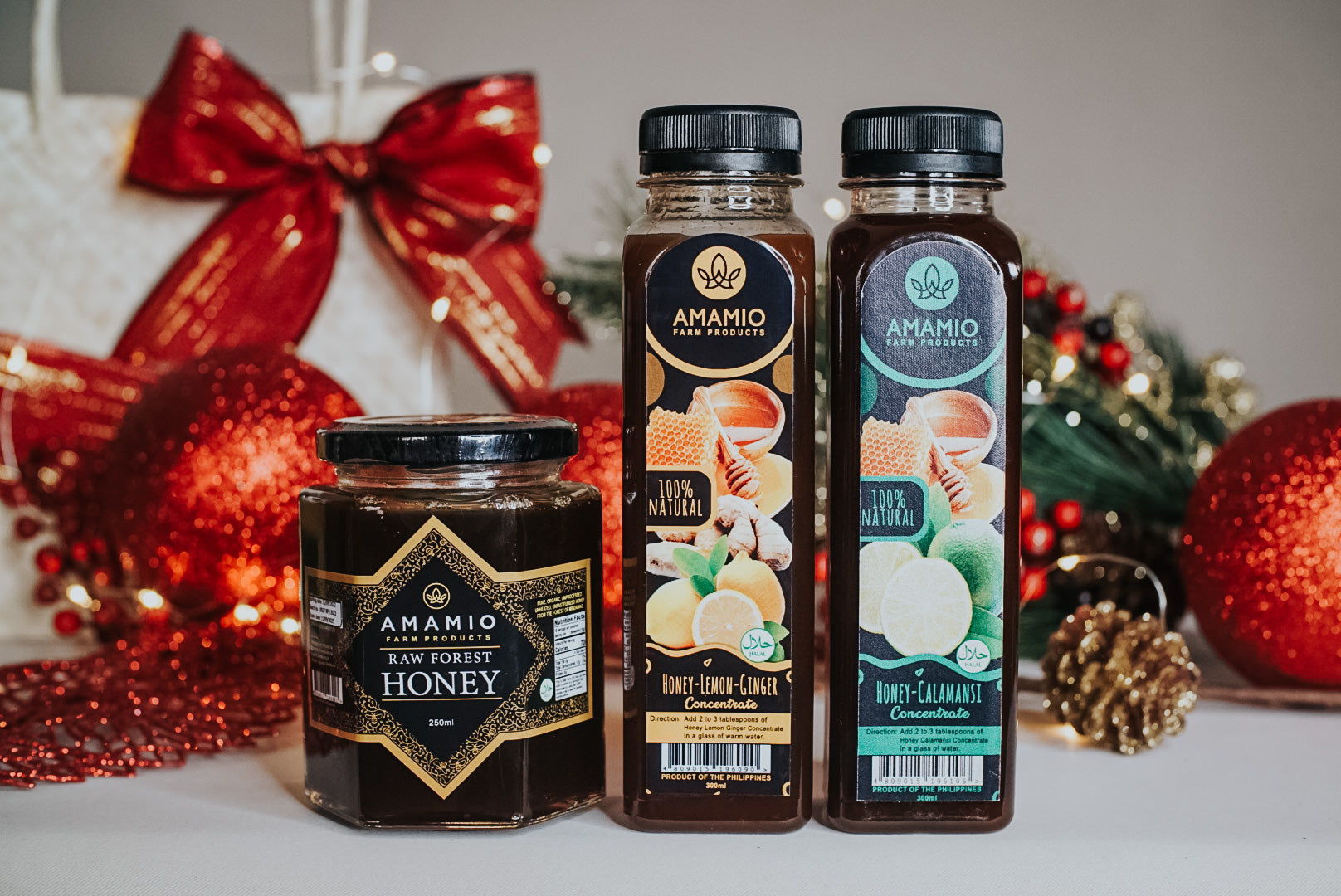 Bundled Gifts1 includes the following: 250ml Raw Forest Honey, Honey Lemon Ginger, Honey Calamansi Concentrate.